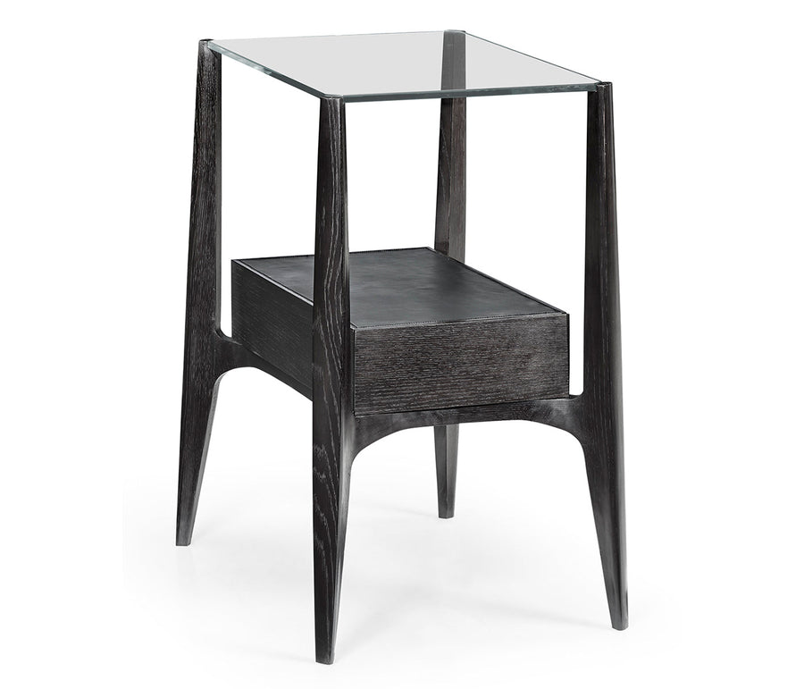 JC Edited - Architects House Collection - Rectangular Architects Black Mocha Oak End Table with Under-tier and Glass Top