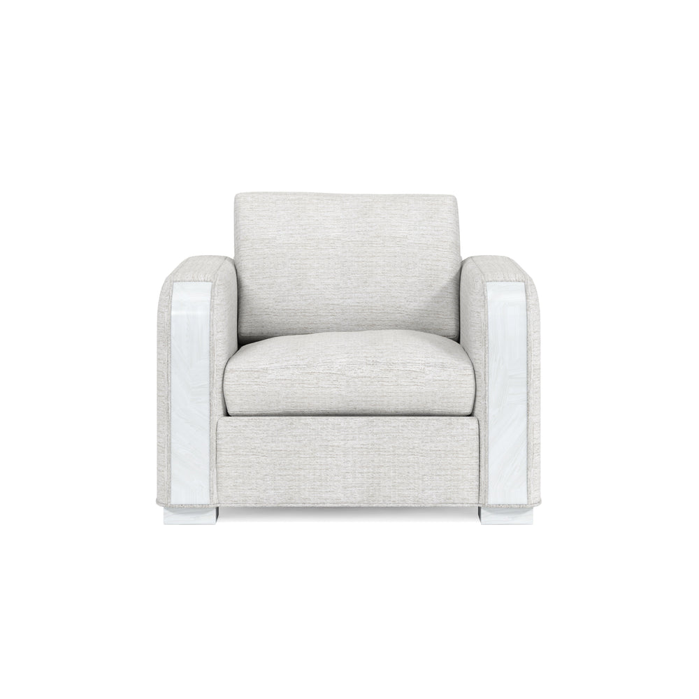 | Features | Low profile, contemporary silhouette, Hardwood frame with exposed wood arms in a driftwood finish, One (1) loose blend-down back cushion, Sineous spring seat construction with one (1) removable pocketed coil seat cushion, Polyester fabric upholstery in a porcelain colorway, No toss pillows included |